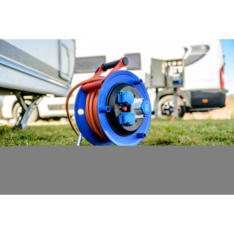 Brennenstuhl 1182690100. Longueur de câble: 25 m, Installation prise en charge: Extérieure, Types de sortie AC: CEE. Nombre de prises en sortie: 3 sortie(s) CA. Tension d'entrée AC: 230 V. Largeur: 290 mm, Profondeur: 230 mm, Hauteur: 365 mm. Nombre de produits inclus: 1 pièce(s)