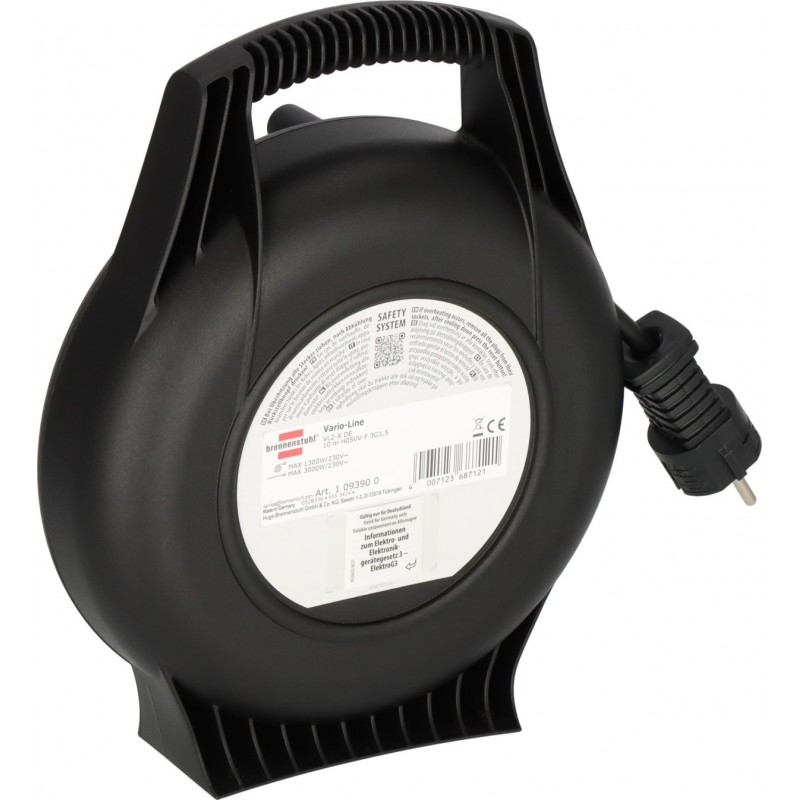 • Brennenstuhl 1093900, 10 m, Intérieure, IP20, Résistant aux impacts, Protection contre la surchauffe, Plastique, Polyvinyl chloride , Noir