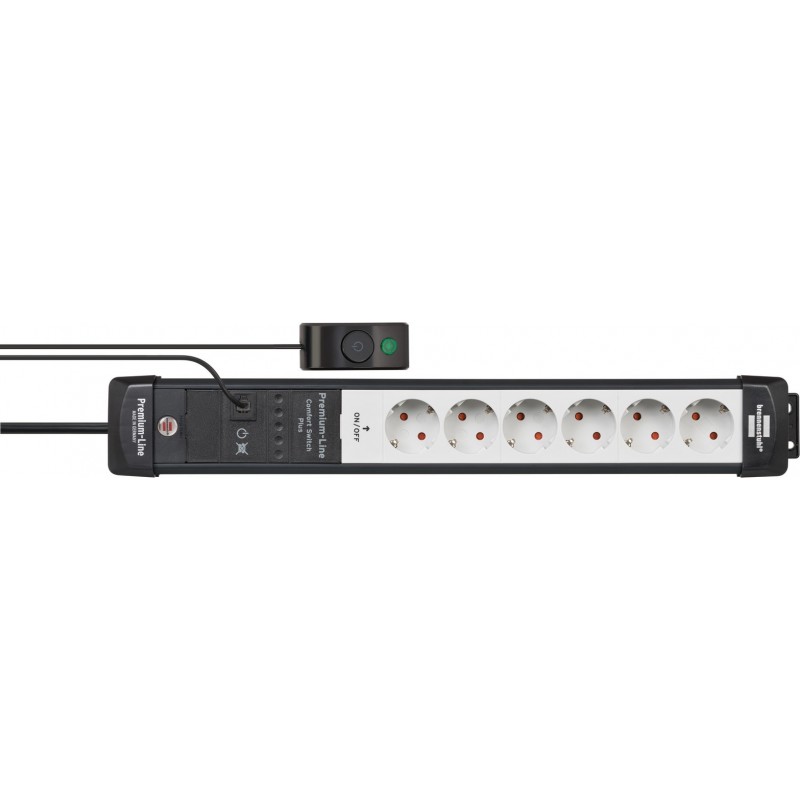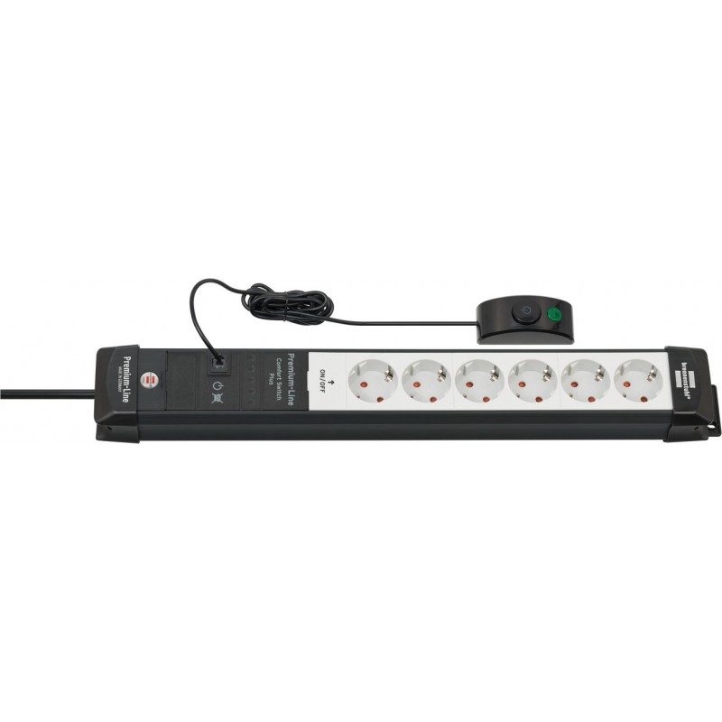 Brennenstuhl Premium-Line. Longueur de câble: 3 m, Installation prise en charge: Intérieure, Facteur de forme de la fiche d'alimentation: Courbe. Nombre de prises en sortie: 6 sortie(s) CA. Tension d'entrée AC: 230 V, Fréquence d'entrée AC: 50 Hz, Intensité (max.): 16 A. Largeur: 90 mm, Profondeur: 525 mm, Hauteur: 80 mm. Nombre de produits inclus: 1 pièce(s)