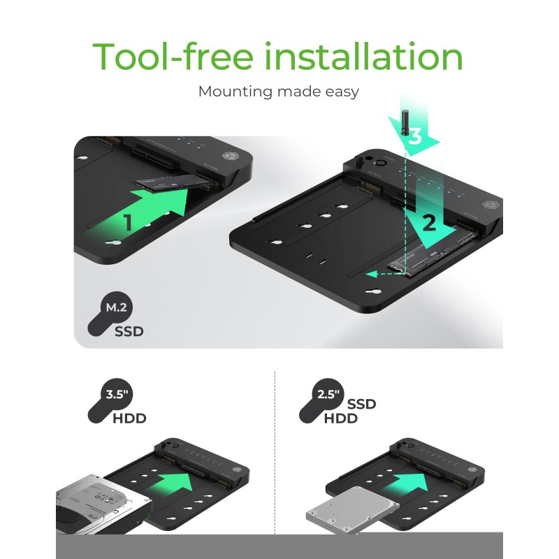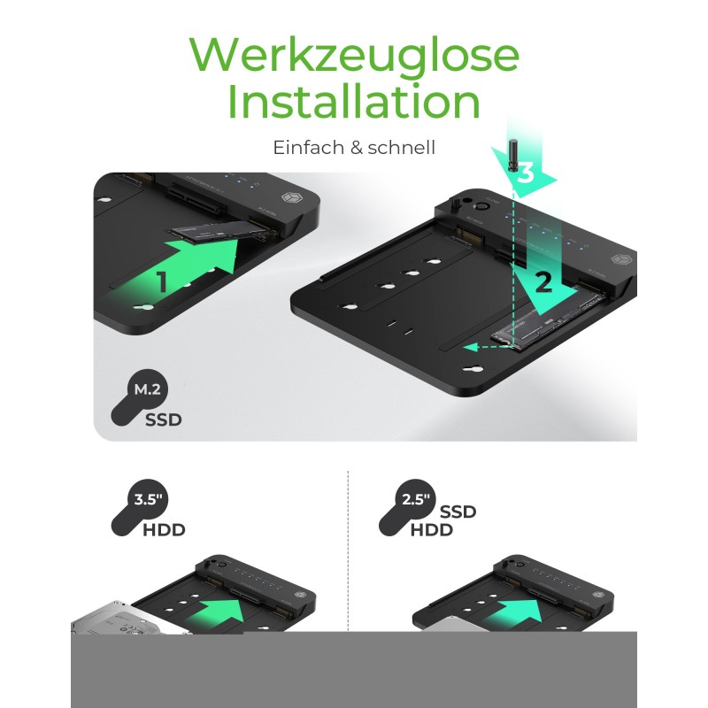 • ICY BOX IB-2915MSCL-C31, HDD, SSD, SATA, Série ATA II, Série ATA III, 2.5,3.5,M.2, USB 3.2 Gen 2 3.1 Gen 2 Type-C, Noir, Plastique