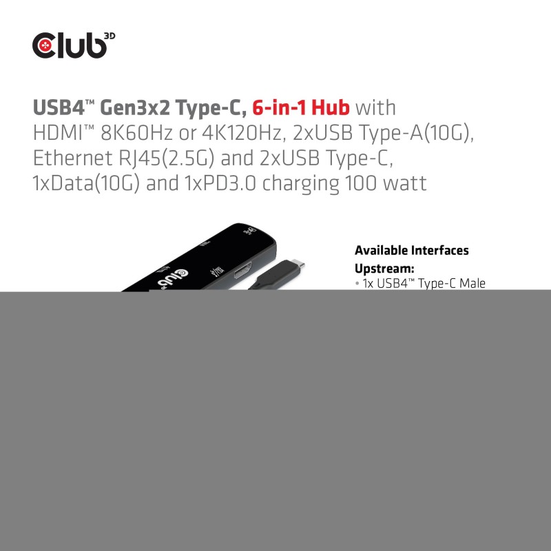 • Club 3D CSV-1599, USB 3.2 Gen 1 3.1 Gen 1 Type-C, 100 W, 1.42.3, 10,100,1000 Mbits, Noir, 120 Hz