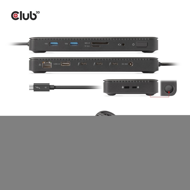 • Club 3D CSV-1581, Station d'accueil, Thunderbolt 4, 140 W, 1000 Mbits, Noir, SD