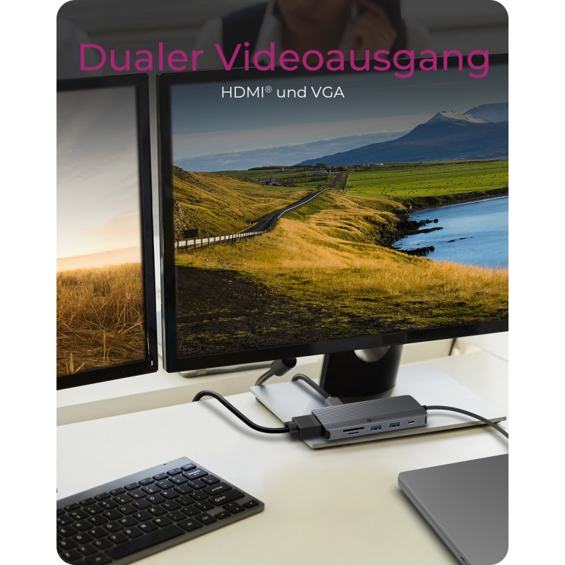 ICY BOX IB-DK4040a-CPD. Technologie de connectivité: Avec fil, Interface de l'hôte: USB 3.2 Gen 1 (3.1 Gen 1) Type-C, Délivrance de la puissance USB jusqu’à: 100 W. LAN Ethernet : taux de transfert des données: 1000 Mbit/s. Couleur du produit: Aluminium, Argent, Cartes mémoire compatibles: MicroSD (TransFlash), SD, Taux de transfert des données: 5 Gbit/s. Type de source d'alimentation: USB, Tension de sortie: 20 V, Courant de sortie: 5 A. Largeur: 127 mm, Profondeur: 55 mm, Hauteur: 17 mm