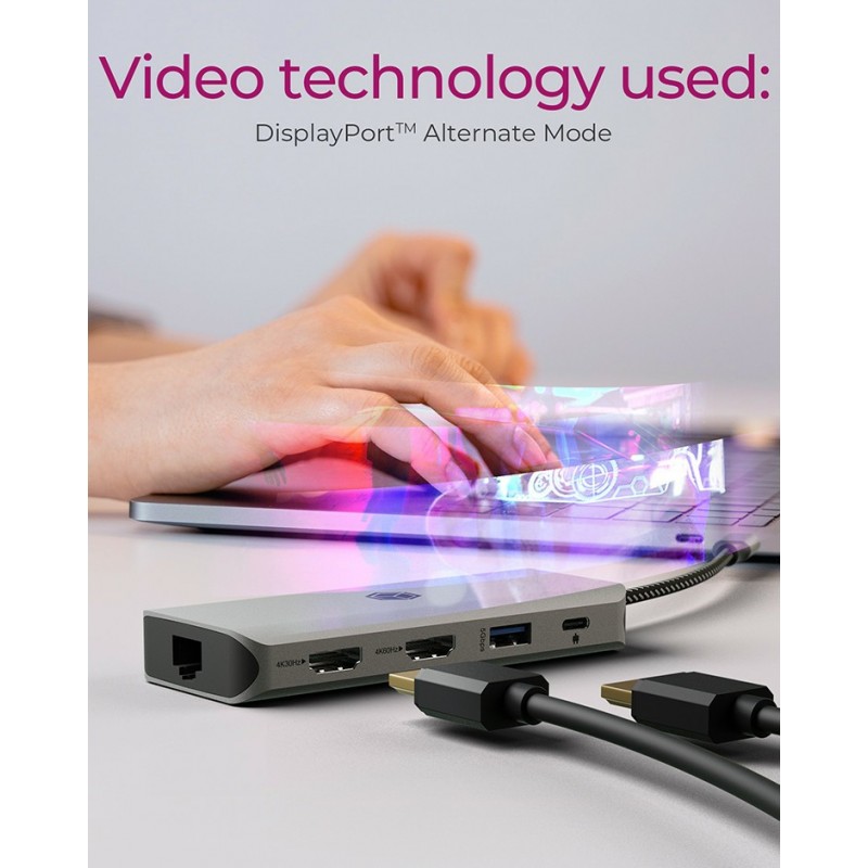 ICY BOX IB-DK4012-CPD. Technologie de connectivité: Avec fil, Interface de l'hôte: USB 3.2 Gen 1 (3.1 Gen 1) Type-C, Délivrance de la puissance USB jusqu’à: 100 W. LAN Ethernet : taux de transfert des données: 10,100,1000 Mbit/s. Couleur du produit: Anthracite, Noir, Cartes mémoire compatibles: MicroSD (TransFlash), SD, Taux de transfert des données: 5 Gbit/s. Longueur du câble USB: 0,15 m. Largeur: 48 mm, Profondeur: 115 mm, Hauteur: 17 mm