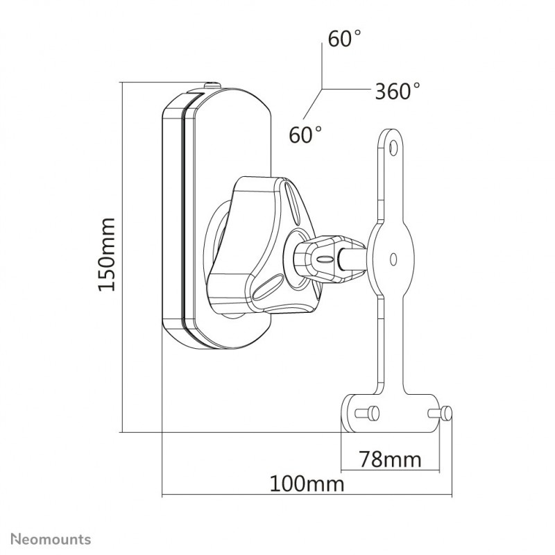 Neomounts NM-WS130BLACK Support mural pour enceintes Sonos Play1 et Play3 - orientable, Plafond, Mur, Plastique, 10 kg, Noir, Mur, 0 - 60