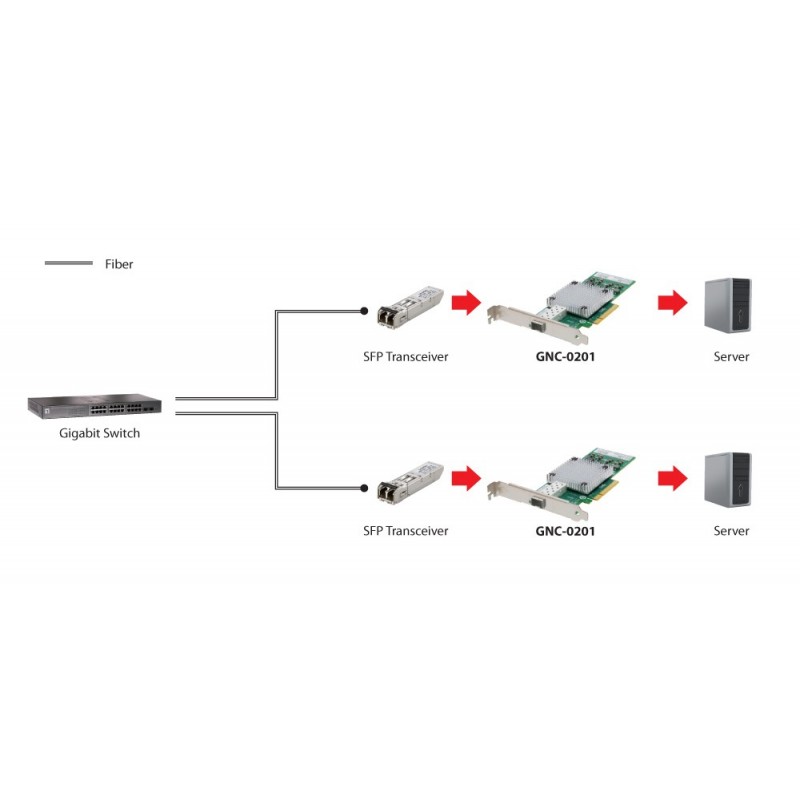 LevelOne GNC-0201. Interne. Technologie de connectivité: Avec fil, Interface de l'hôte: PCI Express, Interface: Fibre. Couleur du produit: Aluminium