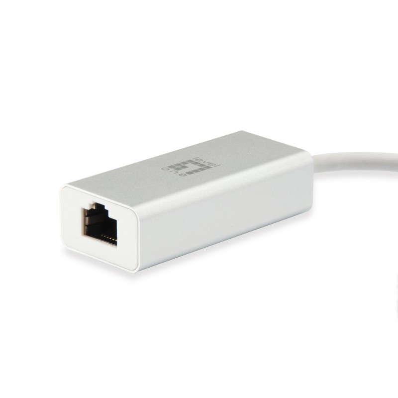 LevelOne USB-0402. Technologie de connectivité: Avec fil, Interface de l'hôte: USB Type-C, Interface: Ethernet. Débit de transfert des données maximum: 1000 Mbit/s. Alimenté par port USB. Couleur du produit: Argent, Blanc
