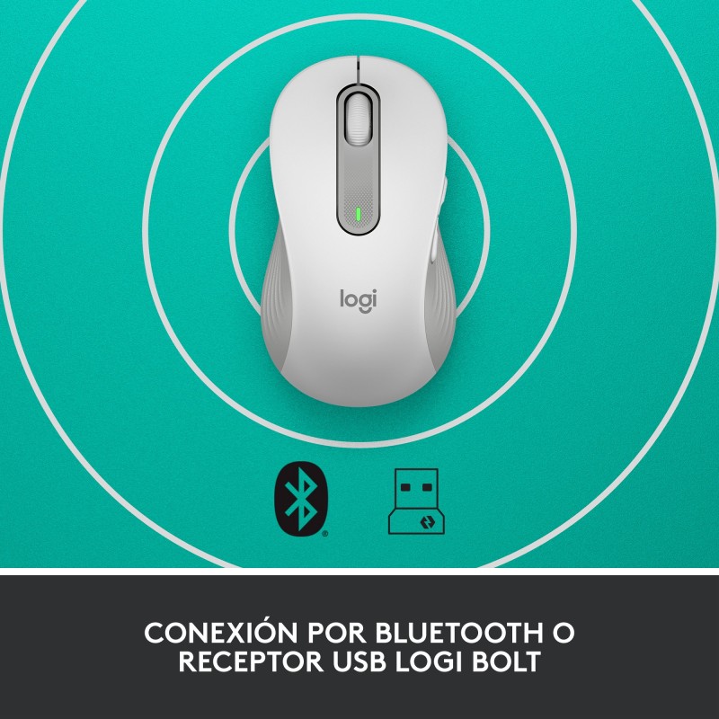 • Logitech Signature M650 L, Gauche, Optique, Bluetooth, 4000 DPI, Blanc