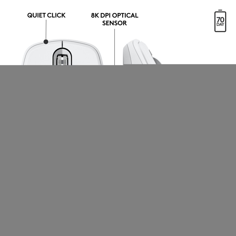 • Logitech MX Anywhere 3S for Business, Droitier, Laser, RF sans fil + Bluetooth, 8000 DPI, Blanc
