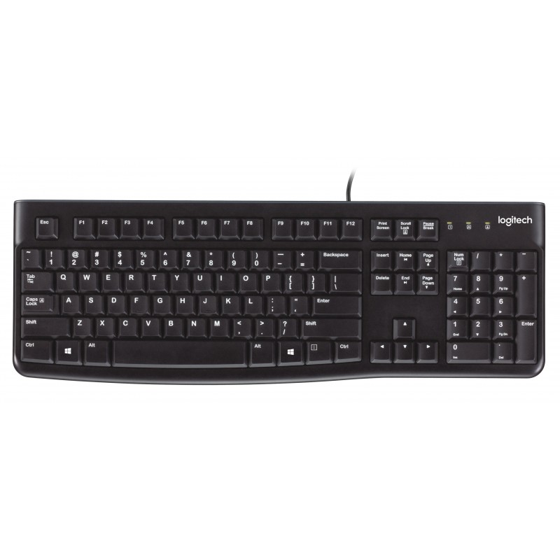 • Logitech K120, Taille réelle 100 %, Avec fil, USB, QWERTY, Noir