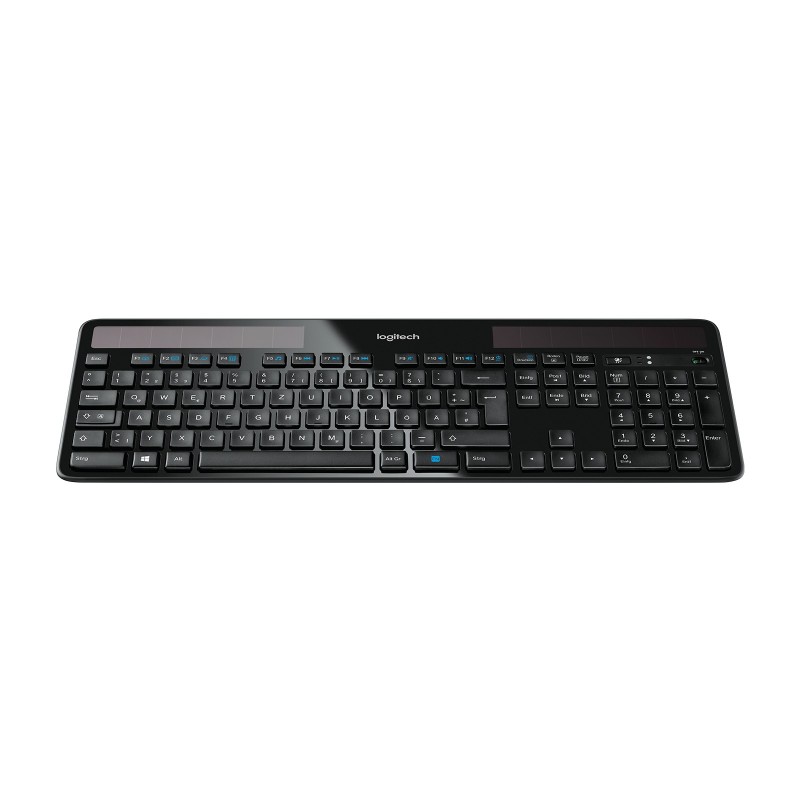 Logitech K750. Facteur de forme du clavier: Taille réelle (100 %). Style de clavier: Droit. Technologie de connectivité: Sans fil, Interface de l'appareil: RF sans fil, Disposition des touches du clavier: QWERTZ, Nombre de touches du clavier: 104, Utilisation recommandée: Universel. Couleur du produit: Graphite