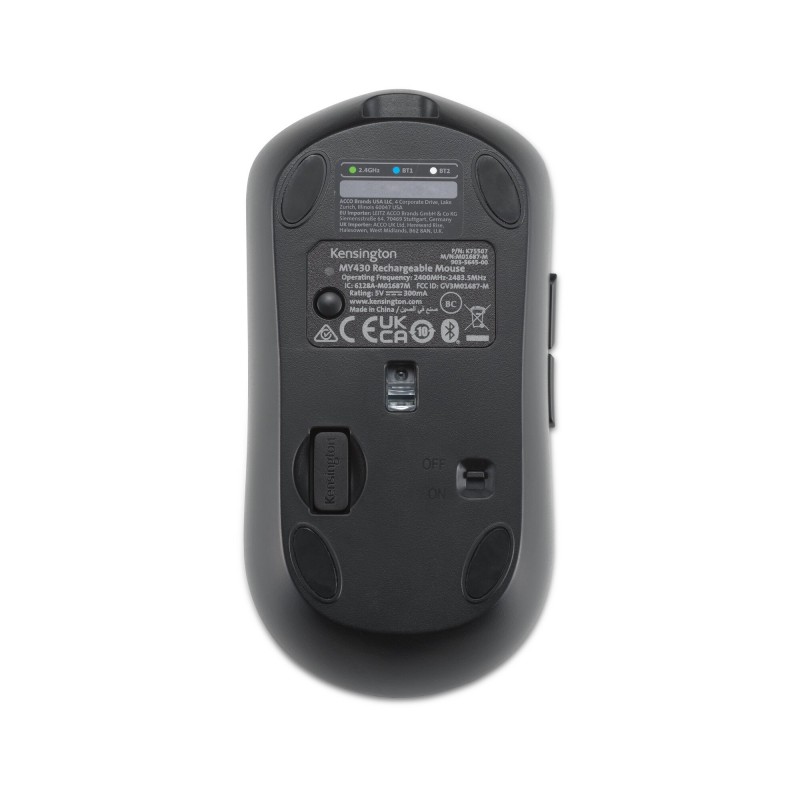 Kensington Souris rechargeable MY430 EQ. Format: Ambidextre. Technologie de détecteur de mouvement: Optique, Interface de l'appareil: RF Wireless + Bluetooth + USB Type-A, Résolution en mouvement: 2400 DPI, Type de boutons: Boutons poussoirs, Quantité de boutons programmables: 6, Type Scroll: Roue. Source d'alimentation: Batteries/Câble. Couleur du produit: Noir