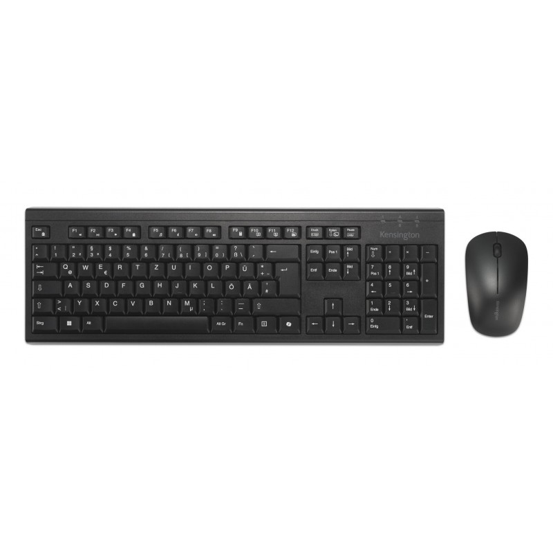 • Kensington KM270 EQ KM270 EQ Kit clavier + souris sans fil rechargeable, Sans fil, RF sans fil + Bluetooth, Clavier à membrane, QWERTZ, Noir, Souris incluse