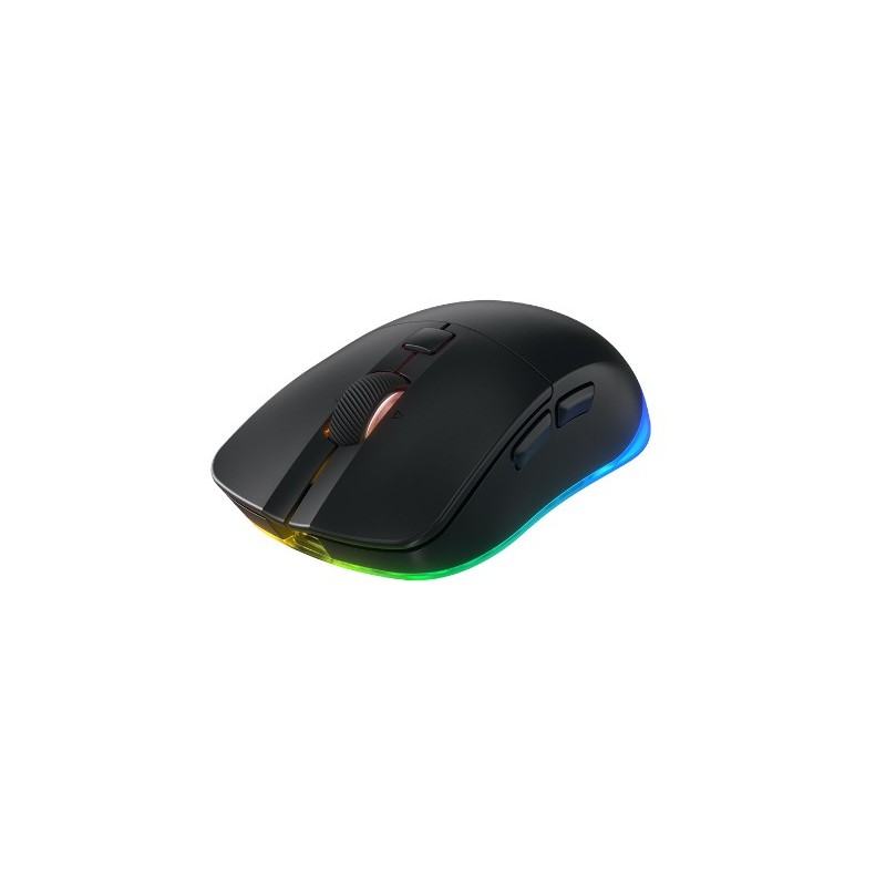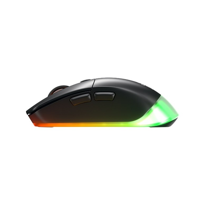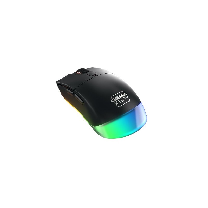 CHERRY XTRFY M50 Wireless. Format: Droitier. Technologie de détecteur de mouvement: Optique, Interface de l'appareil: RF Wireless + Bluetooth + USB Type-C, Résolution en mouvement: 12000 DPI, Type de boutons: Boutons poussoirs, Quantité de boutons programmables: 5, Type Scroll: Roue. Couleur de l'éclairage: Multi. Source d'alimentation: Batteries/Câble. Couleur du produit: Noir
