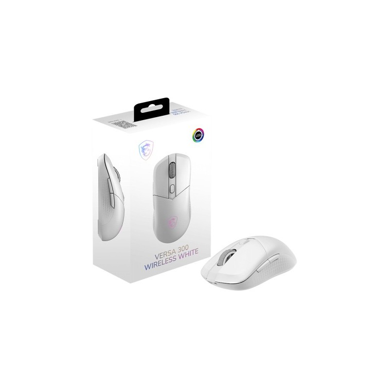 MSI Versa 300 Wireless, Droitier, Optique, RF Wireless + Bluetooth + USB Type-C, 8000 DPI, Blanc