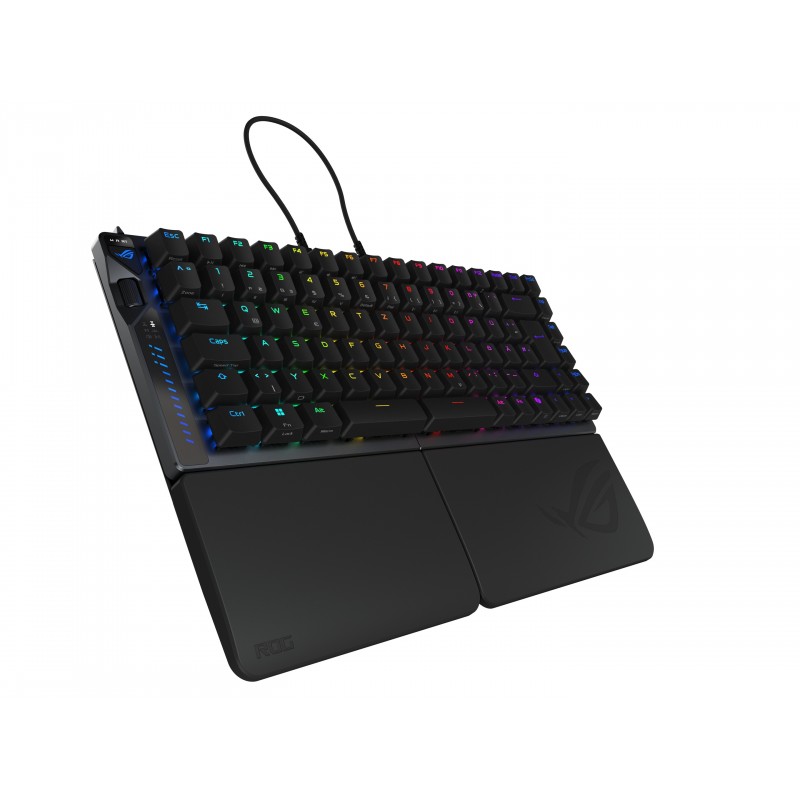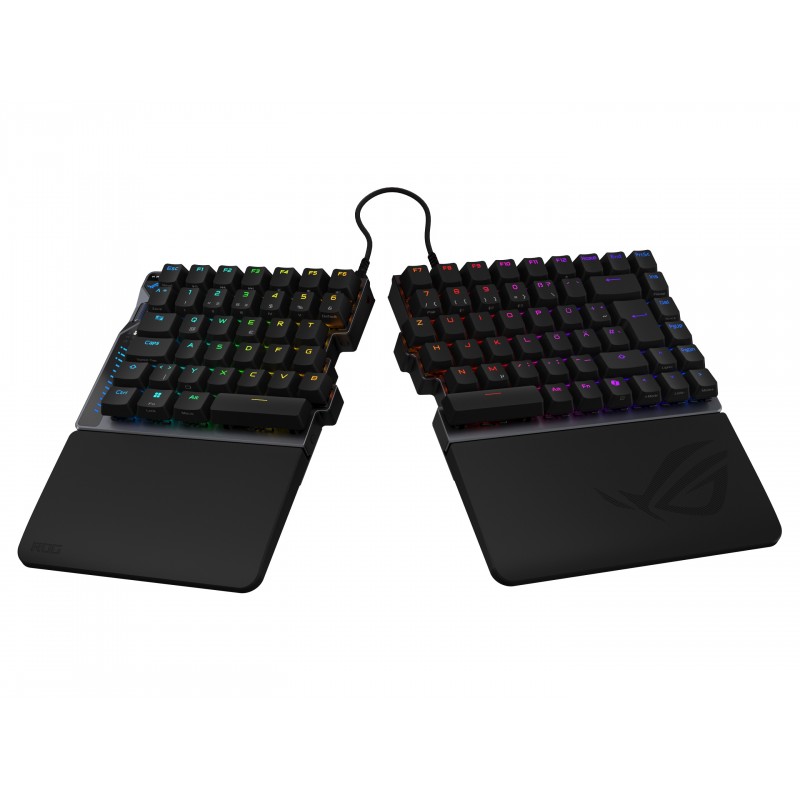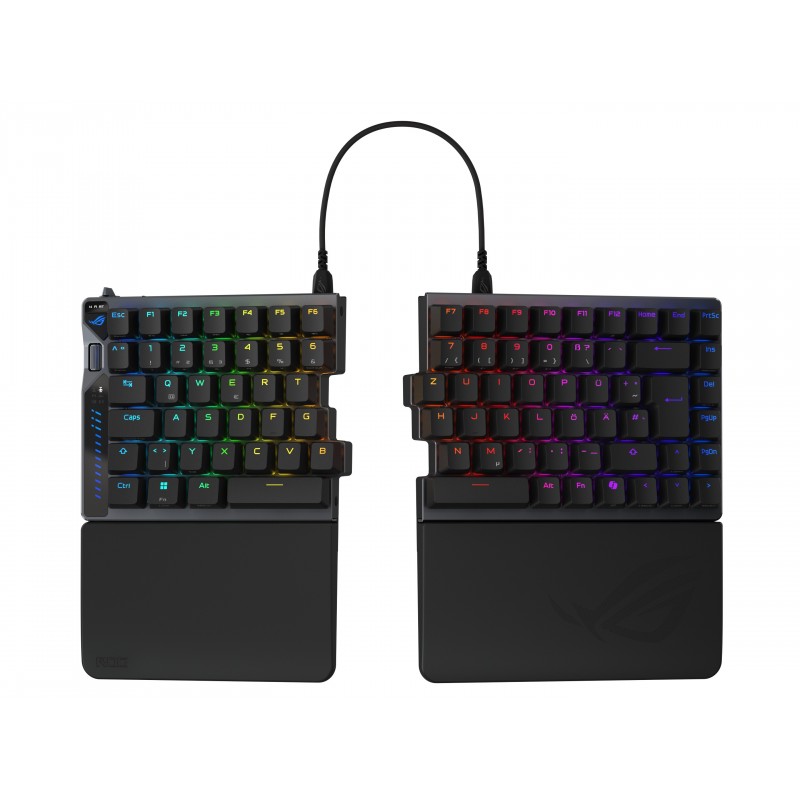 • ASUS ROG Falcata, Avec fil &sans fil, USB + RF Wireless + Bluetooth, Magnetic-mechanical key switch, QWERTZ, LED RGB, Noir