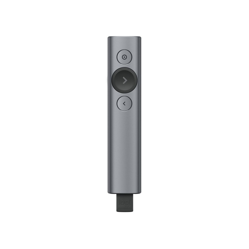 Logitech Spotlight. Interface de réception sans fil: USB, Technologie sans fil: Bluetooth/RF, Type de récepteur: Mini récepteur. Couleur du produit: Gris, Fonctions de présentation: Contrôle distance, Matériel: Aluminium, Plastique. Technologie batterie: Lithium Polymère (LiPo), Capacité de la batterie: 85 mAh, Temps de charge: 60 min. Prise en charge du système d'exploitation Windows: Windows 10, Windows 11, Windows 7, Windows 8, Windows 8.1, Prise en charge du système d'exploitation Mac: Mac OS X 10.10 Yosemite, Mac OS X 10.11 El Capitan, Mac OS X 10.12 Sierra, Mac OS X 10.13 High.... Largeur du récepteur: 1,72 cm, Profondeur du récepteur: 4,04 cm, Hauteur du récepteur: 6,8 mm
