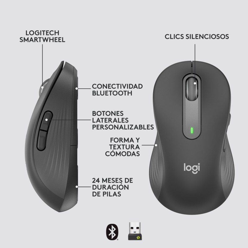 Assortie au clavier, la souris offre de nombreuses fonctionnalités. Ses côtés en caoutchouc et une forme compacte assurent une prise en main optimale. La résolution se règle par simple pression d’un bouton : 1000, 1600 ou 2400 dpi. Une LED d’état bicolore renseigne en temps réel sur l’état de charge de la batterie, la résolution choisie ou l’état de la connexion. Une molette solide à balayage optique et un logement magnétique pour le récepteur USB sont d’autres détails comblant toutes les attentes.