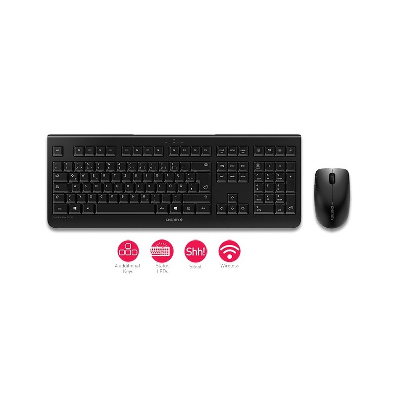 CHERRY DW3000 Kombi Wireless Desktop white. Technologie de connectivité: Sans fil, Interface de l'appareil: RF sans fil, Disposition des touches du clavier: QWERTZ, Utilisation recommandée: Bureau