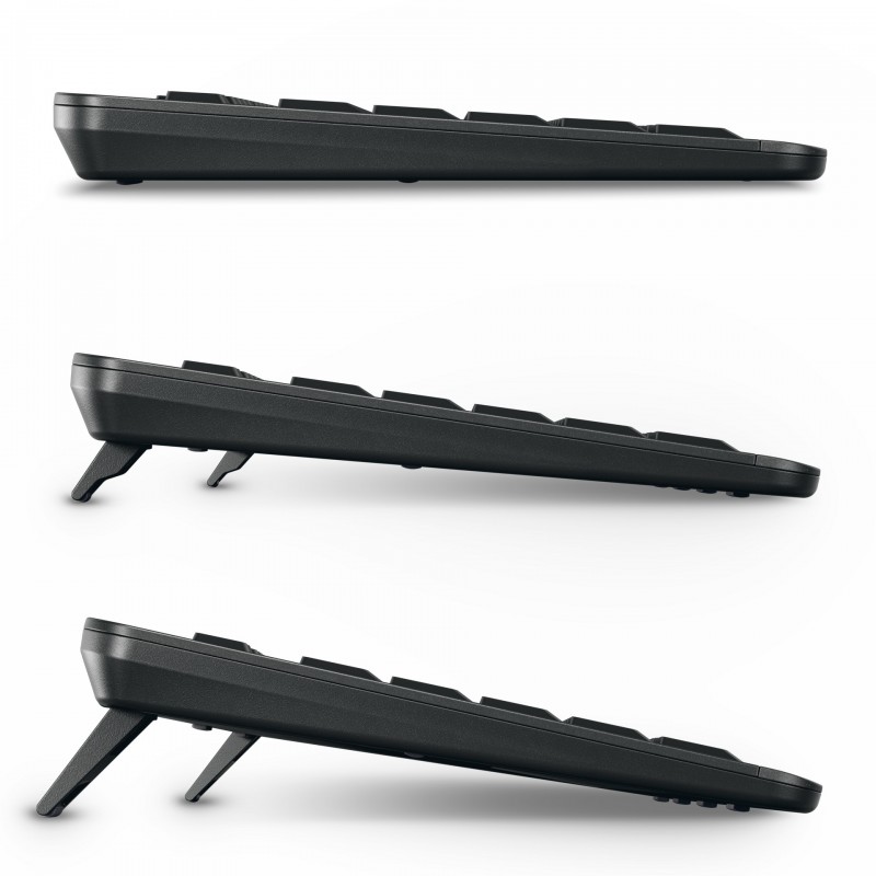 CHERRY Stream desktop ultimate. Facteur de forme du clavier: Taille réelle (100 %). Style de clavier: Droit. Technologie de connectivité: Avec fil &sans fil, Interface de l'appareil: USB + RF Wireless + Bluetooth, Interrupteur à clé de clavier: Commutateur de touche « ciseaux », Disposition des touches du clavier: QWERTZ. Type de rétro: LED. Utilisation recommandée: maison/bureau. Couleur du produit: Noir. Souris incluse