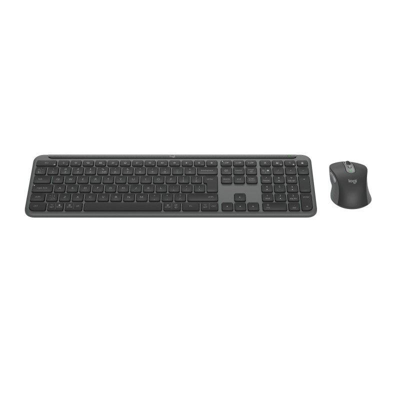 Logitech Signature Slim Combo MK950. Facteur de forme du clavier: Taille réelle (100 %). Style de clavier: Droit. Technologie de connectivité: Sans fil, Interface de l'appareil: RF sans fil + Bluetooth, Interrupteur à clé de clavier: Commutateur de touche « ciseaux », Disposition des touches du clavier: QWERTY, Utilisation recommandée: Bureau. Couleur du produit: Graphite. Souris incluse
