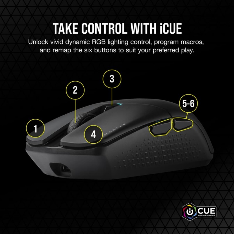 • Corsair KATAR ELITE Wireless, Droitier, Optique, RF Wireless + Bluetooth + USB Type-A, 26000 DPI, Noir