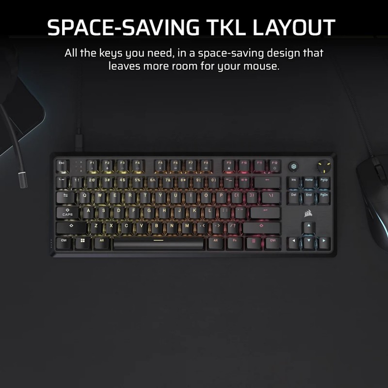 • Corsair K70 CORE TKL, Sans clé 80 - 87%, Avec fil, USB, Clavier mécanique, LED RGB, Noir