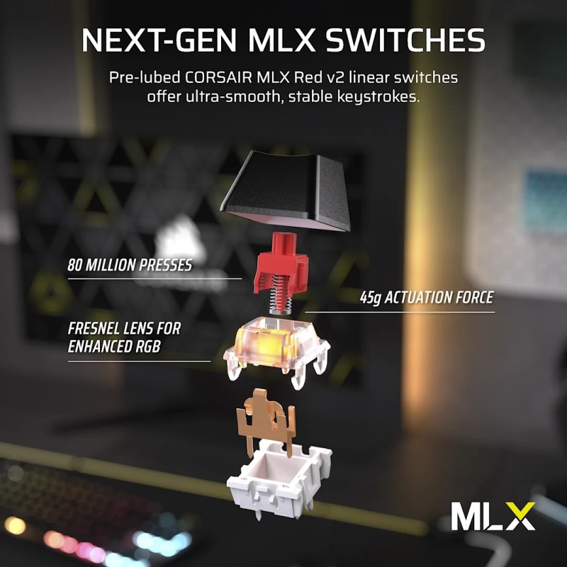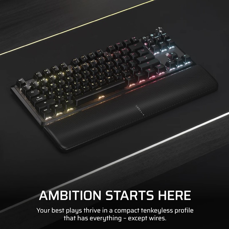 • Corsair K70 CORE TKL WIRELESS, Avec fil &sans fil, USB + RF Wireless + Bluetooth, Clavier mécanique, QWERTY, LED RGB, Noir
