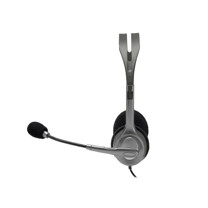 Logitech H110 headset. Type de produit: Casque. Technologie de connectivité: Avec fil. Utilisation recommandée: Bureau/Centre d'appels. Fréquence des écouteurs: 20 - 20000 Hz. Longueur de câble: 2,35 m. Poids: 74 g. Couleur du produit: Noir, Argent