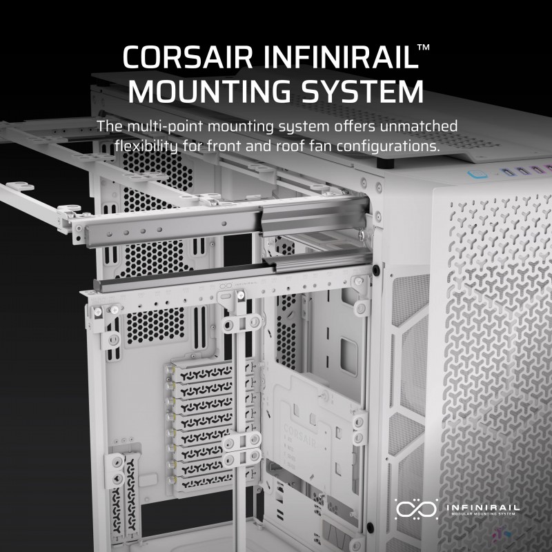 Corsair 9000D RGB AIRFLOW. Format: Full Tower, Type: PC, Couleur du produit: Blanc. Prise en charge des diamètres des ventilateurs avants: 120,140,200 mm, Pris en charge des diamètres des ventilateurs latérals: 120 mm, Pris en charge des diamètres des ventilateurs arrières: 120,140 mm. Largeur: 307 mm, Profondeur: 698 mm, Hauteur: 698 mm