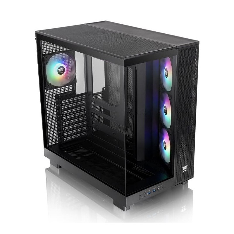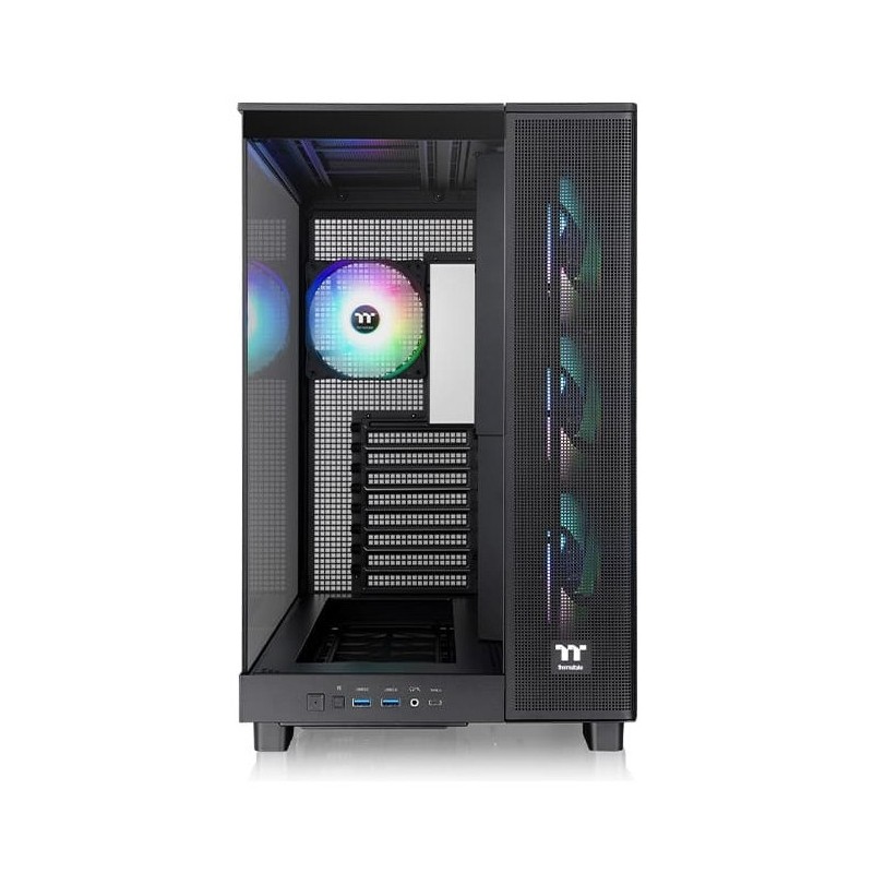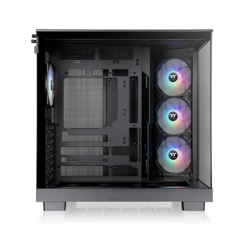 Thermaltake View 380 XL TG ARGB. Format: Midi Tower, Type: PC, Couleur du produit: Noir. Facteurs de forme d'alimentation pris en charge: PS2. Ventilateurs latéraux installés: 3x 120 mm, Pris en charge des diamètres des ventilateurs latérals: 120 mm, Ventilateurs arrières installés: 1x 120 mm. Tailles de disques durs supportées: 3.5", Facteur de forme SSD: 2.5". Largeur: 288 mm, Profondeur: 469 mm, Hauteur: 471 mm