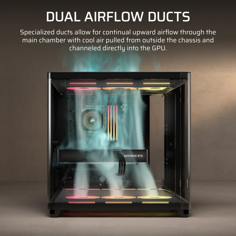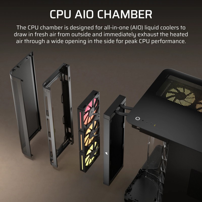 • Corsair AIR 5400 LX-R RGB iCUE LINK, Midi Tower, PC, Noir, ATX, EATX, micro ATX, Mini-ITX, Acier, Verre trempé, Gaming