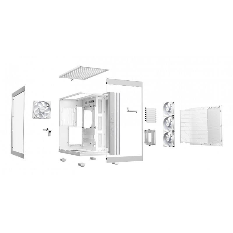 be quiet! Light Base 600 LX Blanc | Boîtier PC ARGB vitré, Mini ITX / Micro ATX / ATX, 4 ventilateurs Light Wings 120 mm PWM. Format: Midi Tower, Type: PC, Couleur du produit: Blanc. Facteurs de forme d'alimentation pris en charge: ATX, PS2. Ventilateurs latéraux installés: 3x 120 mm, Pris en charge des diamètres des ventilateurs latérals: 120 mm, Ventilateurs arrières installés: 1x 120 mm. Tailles de disques durs supportées: 2.5,3.5". Largeur: 305 mm, Profondeur: 450 mm, Hauteur: 455 mm