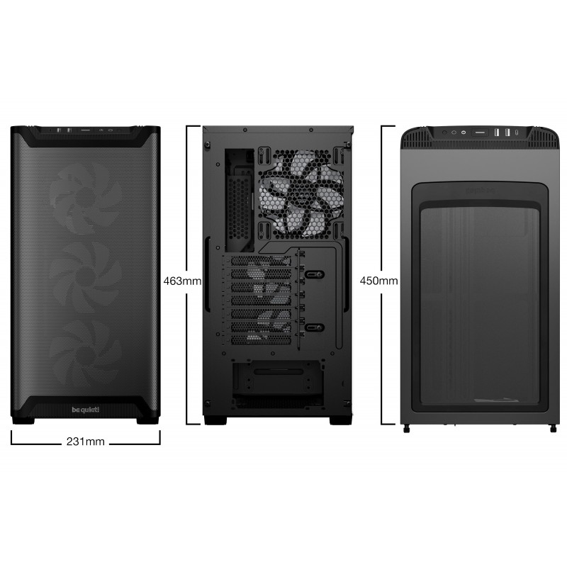 be quiet! Pure Base 501 Noir | Boîtier PC vitré, Mini ATX / Micro ATX / ATX, 4 ventilateurs Light Wings LX PWM, ARGB. Format: Midi Tower, Type: PC, Couleur du produit: Noir. Facteurs de forme d'alimentation pris en charge: ATX, PS2. Ventilateurs installés avant: 3x 120 mm, Prise en charge des diamètres des ventilateurs avants: 120,140 mm, Ventilateurs arrières installés: 1x 140 mm. Tailles de disques durs supportées: 2.5,3.5". Largeur: 231 mm, Profondeur: 450 mm, Hauteur: 463 mm