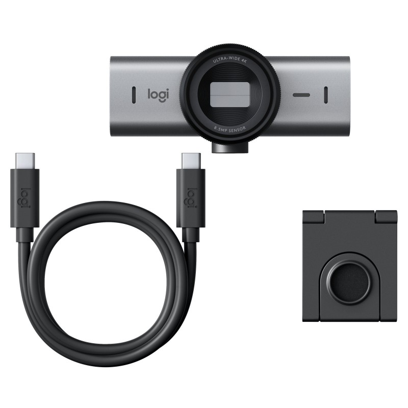 Logitech 960-001530. Mégapixel: 8,5 MP, Résolution vidéo maximale: 4096 x 2160 pixels, Type HD de la caméra: 4K Ultra HD. Interface: USB, Couleur du produit: Graphite, Type de montage: Clip. Prise en charge du système d'exploitation Mac: MacOS, Prise en charge d'autres systèmes d'exploitation: ChromeOS. Certificats de durabilité: CarbonNeutral, Forest Stewardship Council (FSC). Largeur: 98 mm, Profondeur: 52,2 mm, Hauteur: 61,6 mm