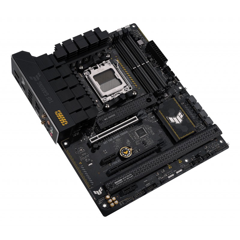 ASUS TUF GAMING B650-PLUS WIFI. Fabricant de processeur: AMD, Socket de processeur (réceptable de processeur): Emplacement AM5, Processeurs compatibles: AMD Ryzen 7000 Series. Types de mémoire pris en charge: DDR5-SDRAM, Mémoire interne maximale: 128 Go, Type de support (slot): DIMM. Interfaces de lecteur de stockage prises en charge: M.2, SATA III, Types de lecteurs de stockage pris en charge: HDD & SSD, Niveaux RAID: 0, 1, 10. Type d'interface Ethernet: 2.5 Gigabit Ethernet, Norme Wi-Fi: Wi-Fi 6 (802.11ax), Standards wifi: 802.11a, 802.11b, 802.11g, Wi-Fi 4 (802.11n), Wi-Fi 5 (802.11ac), Wi-Fi 6 (802.11ax). composant pour: PC, Elément de forme de carte mère: ATX, famille de composant de produits: AMD