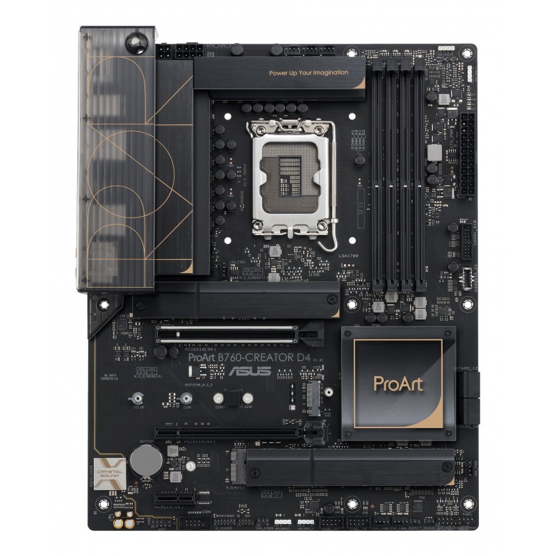ASUS PROART B760-CREATOR D4. Fabricant de processeur: Intel, Socket de processeur (réceptable de processeur): LGA 1700, Processeurs compatibles: Intel® Celeron®, Intel® Pentium® Gold, Intel® Core™ i3, Intel® Core™ i5, Intel® Core™.... Types de mémoire pris en charge: DDR4-SDRAM, Mémoire interne maximale: 128 Go, Type de support (slot): DIMM. Interfaces de lecteur de stockage prises en charge: M.2, SATA III, Types de lecteurs de stockage pris en charge: HDD & SSD, Niveaux RAID: 0, 1, 5, 10. Type d'interface Ethernet: 2.5 Gigabit Ethernet, Gigabit Ethernet. composant pour: PC, Elément de forme de carte mère: ATX, famille de composant de produits: Intel