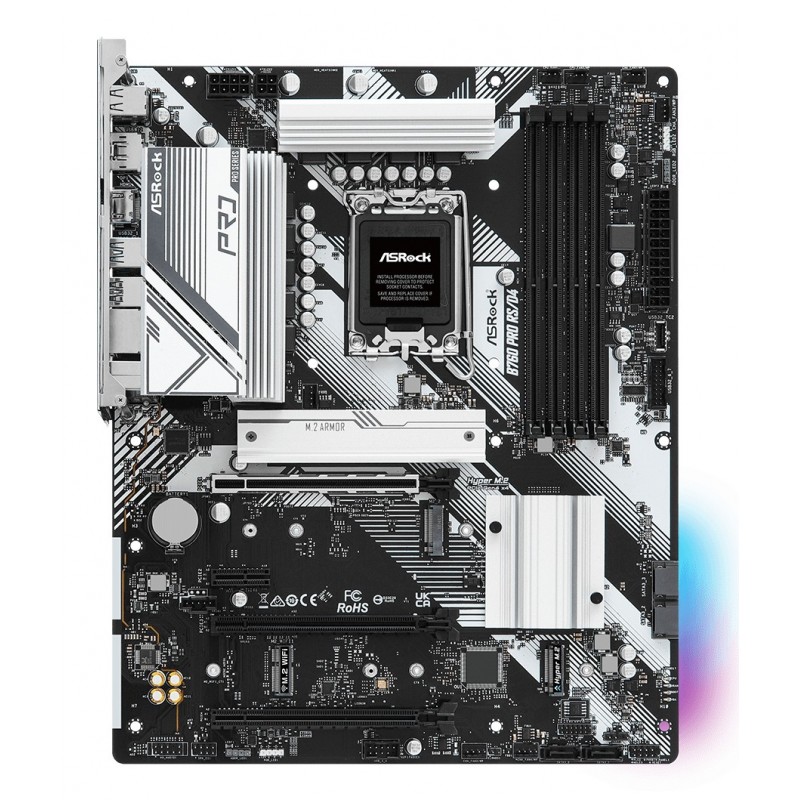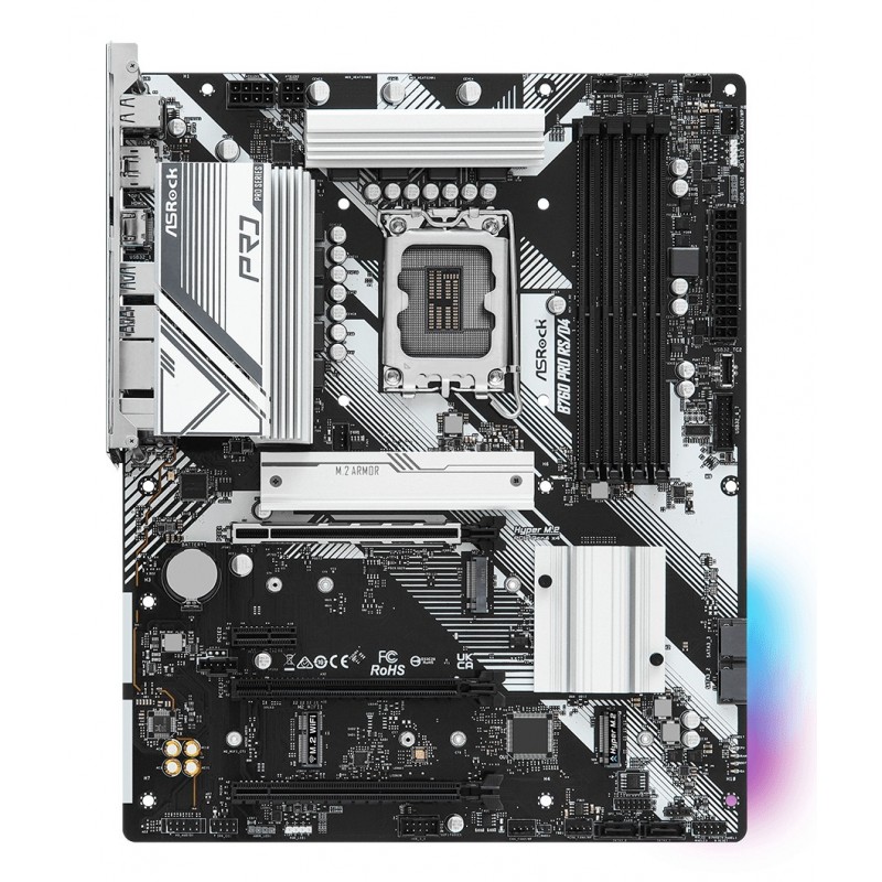 Asrock B760 Pro RS/D4. Fabricant de processeur: Intel, Socket de processeur (réceptable de processeur): LGA 1700, Processeurs compatibles: Intel® Core™ i3, Intel® Core™ i5, Intel® Core™ i7, Intel® Core™ i9. Types de mémoire pris en charge: DDR4-SDRAM, Mémoire interne maximale: 128 Go, Type de support (slot): DIMM. Interfaces de lecteur de stockage prises en charge: M.2, SATA III, Types de lecteurs de stockage pris en charge: HDD & SSD, Niveaux RAID: 0, 1, 5, 10. Type d'interface Ethernet: 2.5 Gigabit Ethernet, Contrôleur de réseau local (LAN): Realtek RTL8125-BG. composant pour: PC, Elément de forme de carte mère: ATX, famille de composant de produits: Intel