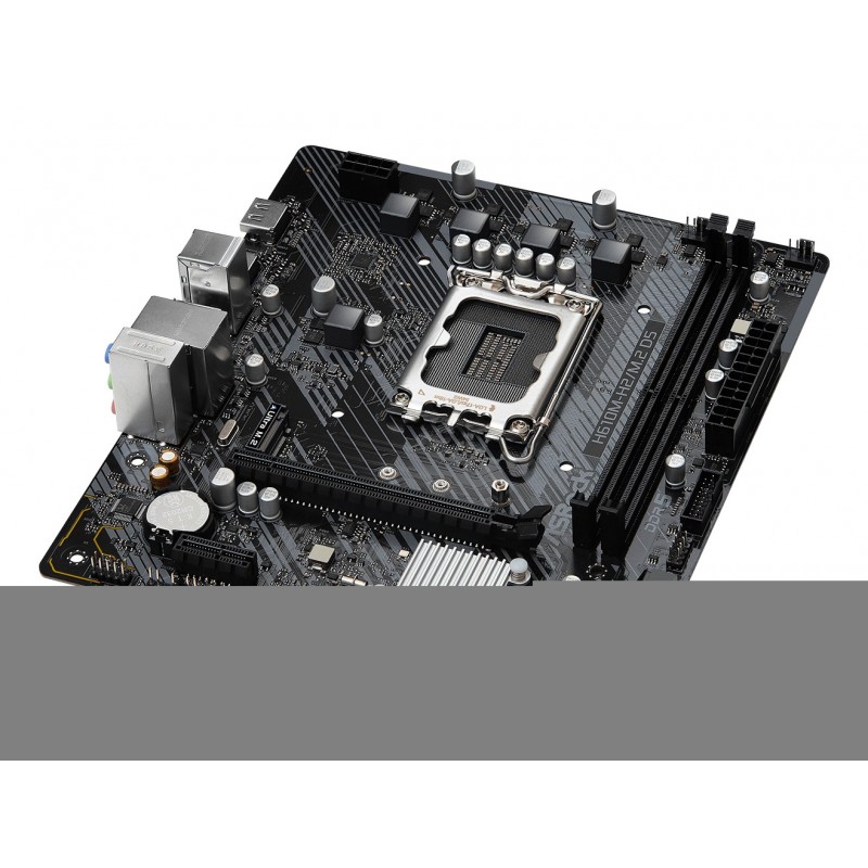 Asrock H610M-H2/M.2 D5. Fabricant de processeur: Intel, Socket de processeur (réceptable de processeur): LGA 1700. Types de mémoire pris en charge: DDR5-SDRAM, Mémoire interne maximale: 96 Go, Type de support (slot): DIMM. Interfaces de lecteur de stockage prises en charge: M.2, SATA III. Type d'interface Ethernet: Gigabit Ethernet, Contrôleur de réseau local (LAN): Realtek 8111H. composant pour: PC, Elément de forme de carte mère: micro ATX, famille de composant de produits: Intel