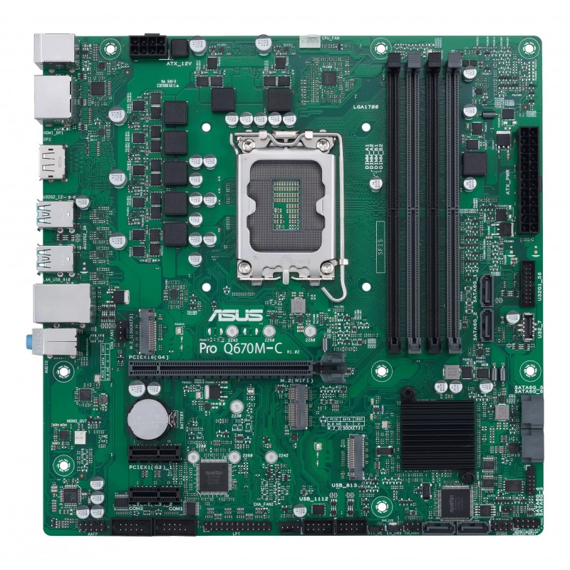 ASUS PRO Q670M-C-CSM. Fabricant de processeur: Intel, Socket de processeur (réceptable de processeur): LGA 1700, Processeurs compatibles: Intel® Celeron®, Intel® Core™ i3, Intel® Core™ i5, Intel® Core™ i7, Intel® Core™ i9,.... Types de mémoire pris en charge: DDR5-SDRAM, Mémoire interne maximale: 192 Go, Type de support (slot): DIMM. Interfaces de lecteur de stockage prises en charge: M.2, SATA III, Types de lecteurs de stockage pris en charge: HDD & SSD, Niveaux RAID: 0, 1, 5, 10. Type d'interface Ethernet: Gigabit Ethernet. composant pour: PC, Elément de forme de carte mère: micro ATX, famille de composant de produits: Intel