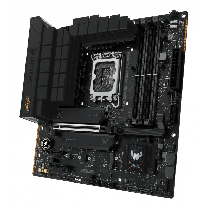 ASUS TUF GAMING B760M-PLUS WIFI II. Fabricant de processeur: Intel, Socket de processeur (réceptable de processeur): LGA 1700, Processeurs compatibles: Intel® Celeron®, Intel® Core™ i3, Intel® Core™ i5, Intel® Core™ i7, Intel® Core™ i9,.... Types de mémoire pris en charge: DDR5-SDRAM, Mémoire interne maximale: 192 Go, Type de support (slot): DIMM. Interfaces de lecteur de stockage prises en charge: M.2, SATA III, Types de lecteurs de stockage pris en charge: HDD & SSD, Niveaux RAID: 0, 1, 5, 10. Type d'interface Ethernet: 2.5 Gigabit Ethernet, Norme Wi-Fi: Wi-Fi 6E (802.11ax), Standards wifi: Wi-Fi 6E (802.11ax). composant pour: PC, Elément de forme de carte mère: micro ATX, famille de composant de produits: Intel