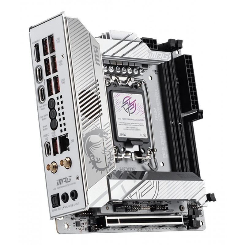 MSI MPG Z890I EDGE TI WIFI. Fabricant de processeur: Intel, Socket de processeur (réceptable de processeur): LGA 1851 (Socket V1), Processeurs compatibles: Intel Core Ultra (Series 2). Types de mémoire pris en charge: DDR5-SDRAM, Mémoire interne maximale: 128 Go, Type de support (slot): DIMM. Interfaces de lecteur de stockage prises en charge: M.2, SATA III, Types de lecteurs de stockage pris en charge: HDD & SSD, Niveaux RAID: 0, 5, 10. Type d'interface Ethernet: 5 Gigabit Ethernet, Norme Wi-Fi: Wi-Fi 7 (802.11be), Standards wifi: 802.11a, 802.11b, 802.11g, Wi-Fi 4 (802.11n), Wi-Fi 5 (802.11ac), Wi-Fi 6 (802.11ax), Wi-Fi 6E.... composant pour: PC, Elément de forme de carte mère: mini ITX, famille de composant de produits: Intel