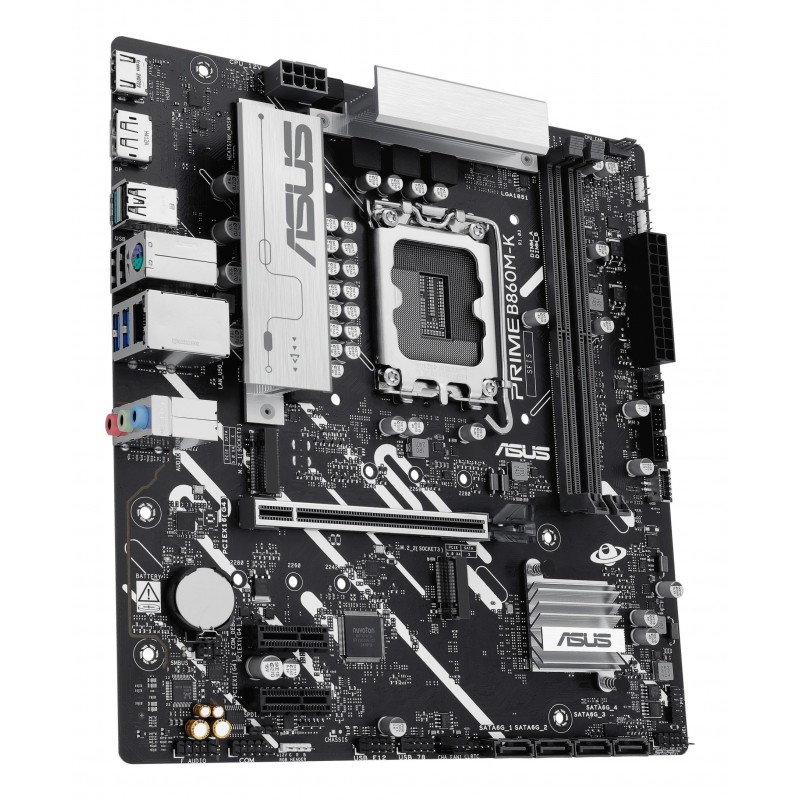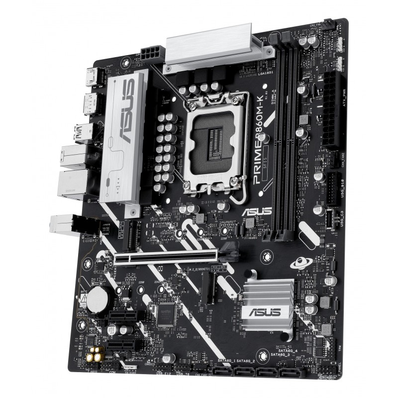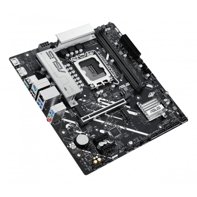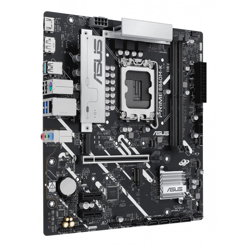 ASUS PRIME B860M-K. Fabricant de processeur: Intel, Socket de processeur (réceptable de processeur): LGA 1851 (Socket V1), Processeurs compatibles: Intel Core Ultra (Series 2). Types de mémoire pris en charge: DDR5-SDRAM, Mémoire interne maximale: 128 Go, Type de support (slot): DIMM. Interfaces de lecteur de stockage prises en charge: M.2, SATA III, Types de lecteurs de stockage pris en charge: HDD & SSD, Niveaux RAID: 0, 1, 5, 10. Type d'interface Ethernet: 2.5 Gigabit Ethernet. composant pour: PC, Elément de forme de carte mère: micro ATX, famille de composant de produits: Intel