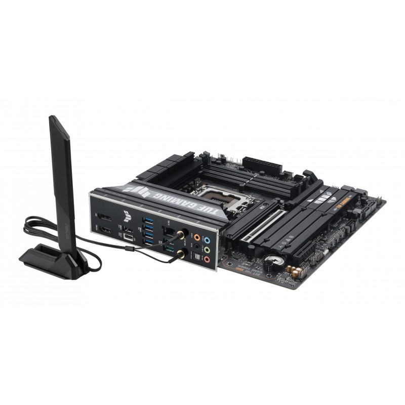 ASUS TUF GAMING B860M-PLUS WIFI. Fabricant de processeur: Intel, Socket de processeur (réceptable de processeur): LGA 1851 (Socket V1), Processeurs compatibles: Intel Core Ultra (Series 2). Types de mémoire pris en charge: DDR5-SDRAM, Mémoire interne maximale: 256 Go, Type de support (slot): DIMM. Interfaces de lecteur de stockage prises en charge: M.2, SATA III, Types de lecteurs de stockage pris en charge: HDD & SSD, Niveaux RAID: 0, 1, 5, 10. Type d'interface Ethernet: 2.5 Gigabit Ethernet, Norme Wi-Fi: Wi-Fi 7 (802.11be), Standards wifi: Wi-Fi 7 (802.11be). composant pour: PC, Elément de forme de carte mère: micro ATX, famille de composant de produits: Intel