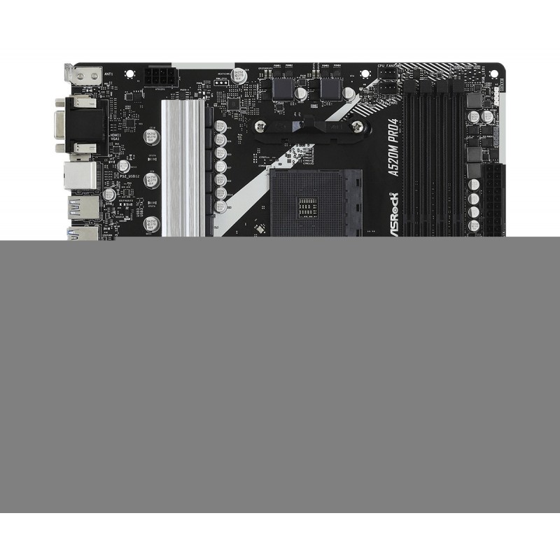 Asrock A520M Pro4. Fabricant de processeur: AMD, Socket de processeur (réceptable de processeur): Emplacement AM4, Processeurs compatibles: AMD Ryzen 3000 Series. Types de mémoire pris en charge: DDR4-SDRAM, Mémoire interne maximale: 64 Go, Type de support (slot): DIMM. Interfaces de lecteur de stockage prises en charge: M.2, SATA III. Famille d'adaptateur graphique: AMD, Adaptateur graphique: Radeon Vega. Type d'interface Ethernet: Gigabit Ethernet, Contrôleur de réseau local (LAN): Realtek RTL8111H