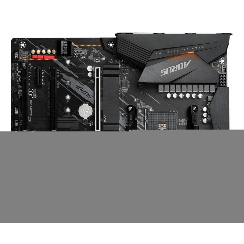 GIGABYTE B550 AORUS ELITE V2 Carte mère - Processeurs AMD Ryzen 5000, VRM 12+2 phases, jusqu'à 4733 MHz DDR4, 1xPCIe 4.0 + 1xPCIe 3.0 M.2, LAN 2.5GbE, USB 3.2 Gen 2. Fabricant de processeur: AMD, Socket de processeur (réceptable de processeur): Emplacement AM4, Processeurs compatibles: AMD Ryzen 3000 Series, AMD Ryzen 4000 Series, AMD Ryzen 5000 Series. Types de mémoire pris en charge: DDR4-SDRAM, Mémoire interne maximale: 128 Go, Type de support (slot): DIMM. Interfaces de lecteur de stockage prises en charge: M.2, SATA III, Types de lecteurs de stockage pris en charge: HDD & SSD, Niveaux RAID: 0, 1, 10. Résolution maximale: 5120 x 2880 pixels. Type d'interface Ethernet: 2.5 Gigabit Ethernet, Contrôleur de réseau local (LAN): Realtek RTL8125