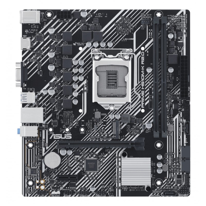 ASUS PRIME H510M-K R2.0. Fabricant de processeur: Intel, Socket de processeur (réceptable de processeur): LGA 1200 (Socket H5), Processeurs compatibles: Intel® Celeron®, Intel® Core™ i3, Intel® Core™ i5, Intel® Core™ i7, Intel® Core™ i9,.... Types de mémoire pris en charge: DDR4-SDRAM, Mémoire interne maximale: 64 Go, Type de support (slot): DIMM. Interfaces de lecteur de stockage prises en charge: M.2, SATA III, Types de lecteurs de stockage pris en charge: HDD & SSD. Type d'interface Ethernet: Fast Ethernet, Gigabit Ethernet. composant pour: PC, Elément de forme de carte mère: micro ATX, famille de composant de produits: Intel