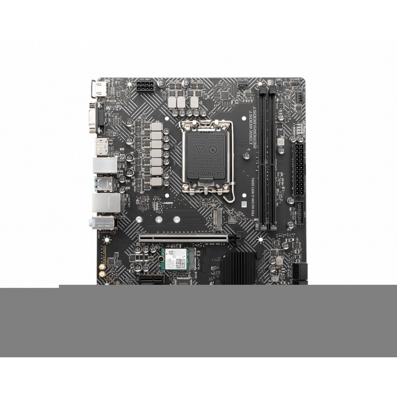 MSI PRO H610M-G WIFI DDR4. Fabricant de processeur: Intel, Socket de processeur (réceptable de processeur): LGA 1700, Processeurs compatibles: Intel® Celeron®, Intel® Pentium®, Intel® Pentium® Gold. Types de mémoire pris en charge: DDR4-SDRAM, Mémoire interne maximale: 64 Go, Type de support (slot): DIMM. Interfaces de lecteur de stockage prises en charge: M.2, SATA III, Types de lecteurs de stockage pris en charge: SSD, Niveaux RAID: 0, 1, 5, 10. Type d'interface Ethernet: Gigabit Ethernet, Norme Wi-Fi: Wi-Fi 5 (802.11ac), Standards wifi: 802.11a, 802.11b, 802.11g, Wi-Fi 4 (802.11n), Wi-Fi 5 (802.11ac). composant pour: PC, Elément de forme de carte mère: micro ATX, famille de composant de produits: Intel