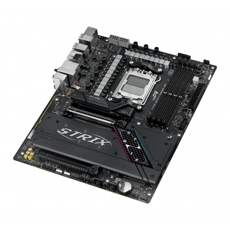 ASUS ROG STRIX B850-F GAMING WIFI. Fabricant de processeur: AMD, Socket de processeur (réceptable de processeur): Emplacement AM5, Processeurs compatibles: AMD Ryzen 7000 Series, AMD Ryzen 8000 Series, AMD Ryzen 9000 Series. Types de mémoire pris en charge: DDR5-SDRAM, Mémoire interne maximale: 192 Go, Type de support (slot): DIMM. Interfaces de lecteur de stockage prises en charge: M.2, SATA III, Types de lecteurs de stockage pris en charge: HDD & SSD, Niveaux RAID: 0, 1, 5, 10. Résolution maximale: 7680 x 4320 pixels. Type d'interface Ethernet: 2.5 Gigabit Ethernet, Norme Wi-Fi: Wi-Fi 7 (802.11be), Standards wifi: Wi-Fi 7 (802.11be)