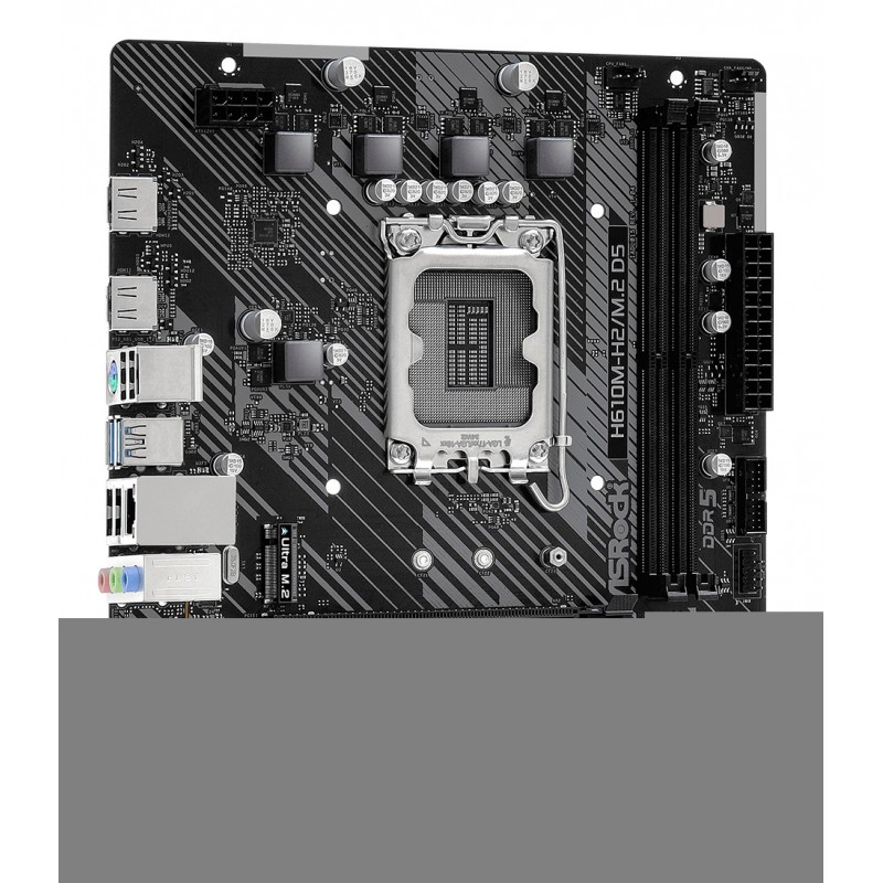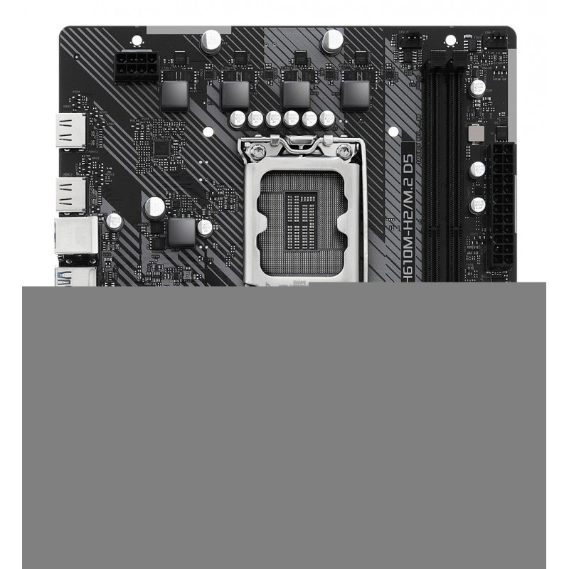 Asrock H610M-H2/M.2 D5. Fabricant de processeur: Intel, Socket de processeur (réceptable de processeur): LGA 1700. Types de mémoire pris en charge: DDR5-SDRAM, Mémoire interne maximale: 96 Go, Type de support (slot): DIMM. Interfaces de lecteur de stockage prises en charge: M.2, SATA III. Type d'interface Ethernet: Gigabit Ethernet, Contrôleur de réseau local (LAN): Realtek 8111H. composant pour: PC, Elément de forme de carte mère: micro ATX, famille de composant de produits: Intel
